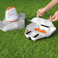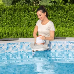 Robotstofzuiger voor op- en inbouw zwembaden met een vlakke bodem van max. 20 m² of Ø 488 cm. Uitgerust met een oplaadbare Lithium batterij. Simpel en eenvoudig schoon te maken ontwerp. Een rondgang duurt max. 40 minuten. Oplaadtijd: 5-6 uur. Vuil reservoir van 2,2 liter. Met aan/uit led licht, knippert wanneer batterij bijna leeg is (10 minuten). Inclusief koord met drijver om de robot te lokaliseren en terug te halen. Afmeting: 37x29x26,5 cm.