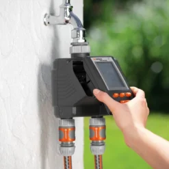 Met de GARDENA Besproeiingscomputer MultiControl duo kunt u twee verschillende tuinsectoren besproeien. Bijvoorbeeld, het gazon achter het huis en het bloemenbed aan de voorkant. Beide uitgangen kunnen individueel worden geprogrammeerd. Dat betekent: u kiest de gewenste besproeiingsstarttijd, duur en frequentie. Er kunnen maximaal drie besproeiingen per dag geselecteerd en geprogrammeerd worden per uitgang tot een maximum van 3 uur en 59 minuten. Het praktische bedieningspaneel van de besproeiingscomputer kan eraf gehaald worden voor een eenvoudig programmering. Functies kunnen worden geselecteerd met een druk op de knop. Dankzij de intuïtieve bediening en de stap-voor-stap weergave van alle besproeiingsgegevens gaat dit heel eenvoudig. Op het