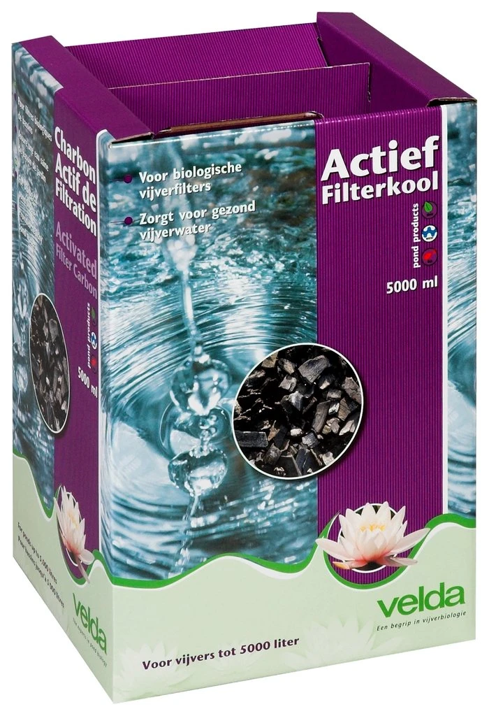 Actief Filterkool is een absorptiekool dat bij uitstek geschikt is voor het filtreren van vijverwater. Het poreuze materiaal verwijdert vuil- en stofdeeltjes uit het water. Door de hoge doorstroomsnelheid en de lange standtijd van deze kool wordt het met succes toegepast in drukfilters en biologische vijverfilters.Filtratie van het vijverwater kan zowel langs mechanische als biologische weg. De werking van mechanische filtratie berust op het verwijderen van organische en anorganische vuildeeltjes evenals geur- en kleurstoffen. Het principe van biologische filtratie is om door middel van micro-organismen een betere en snellere omzetting te verkrijgen van organische bestanddelen. De Velda filterwatten en filterkool materialen staan garant voor een uitstekende waterfiltratie.Filtermaterialen bepalen de kwaliteit van het filter Niet het filter, maar de filtermaterialen bepalen de kwaliteit van de filtratie. Mechanisch filtermateriaal houdt het vuil tegen, maar kan geen afvalstoffen afbreken. Biologische filtermaterialen zetten de afvalstoffen wel om, maar houden het vuil niet tegen. Daarom is een combinatie doorgaans het beste. Bijvoorbeeld als volgt:Watten of filterschuim dat grove vuildeeltjes verwijdert;Actieve vijverkool, dat geur- en kleurstoffen absorbeert;Dragermateriaal voor de aanhechting van micro-organismen, zoals nitraat- of ammonium filtermedium.